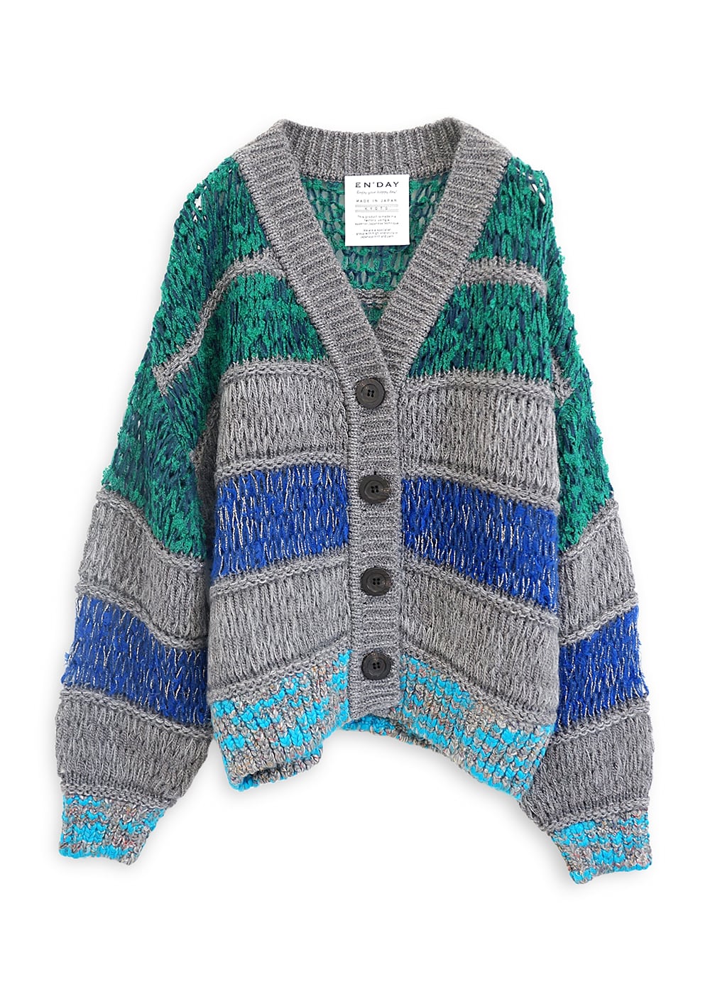 ハンドニットのような大きな目でザクザクと編まれた、存在感のあるシアーカーディガン。