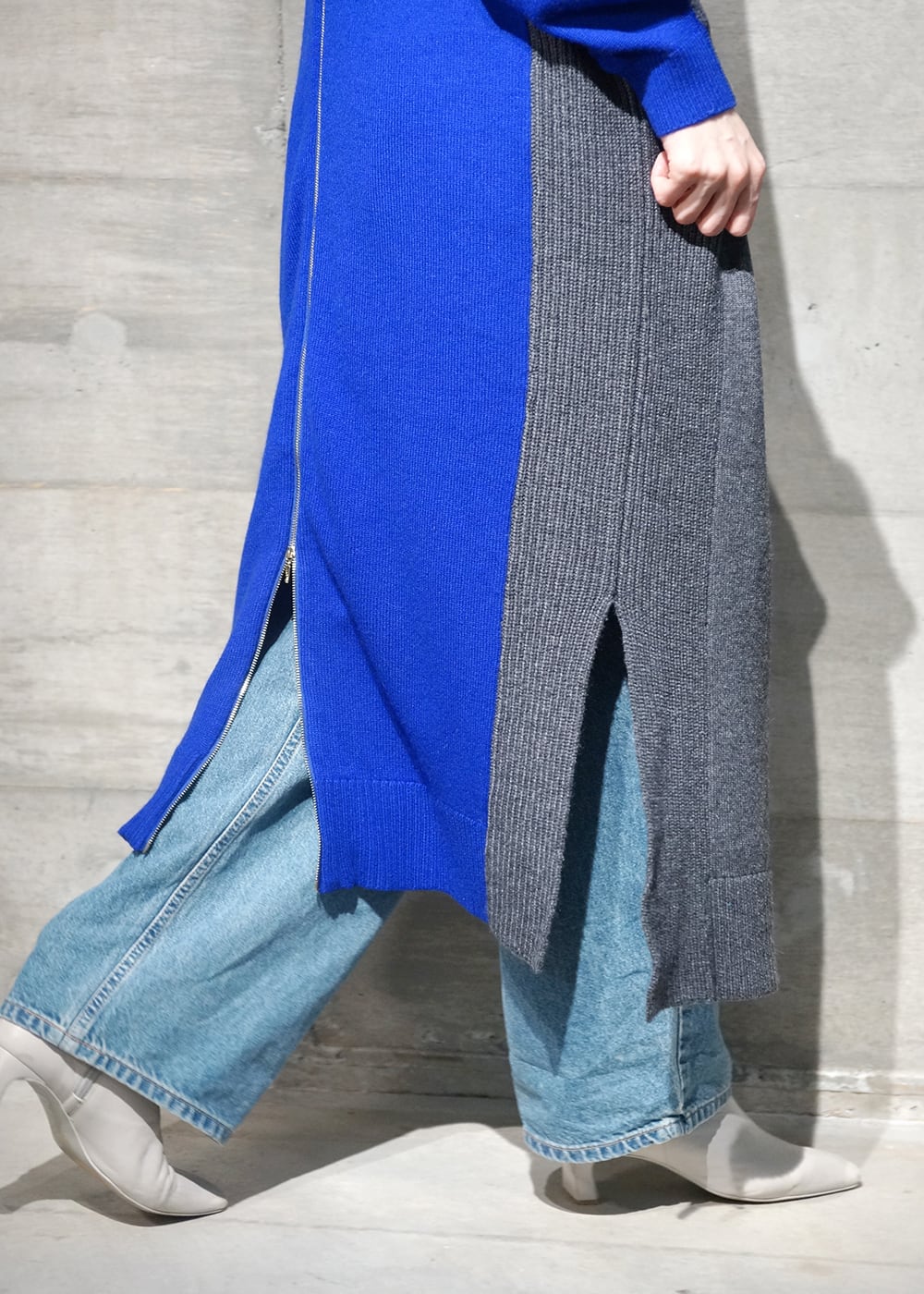 バイカラー×ジップで遊ぶ。大人のための“4WAY ”ロング丈ニット。