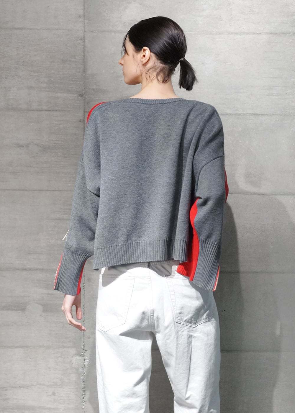 肩から袖口までのファスナーは、袖口を開けるとスリットスリーブ風に軽やかに揺れる表情に変化。パンツにはリラックス感を添え、スカートには動きのあるモード感をプラス。着こなしの幅がぐっと広がるアクセントに。