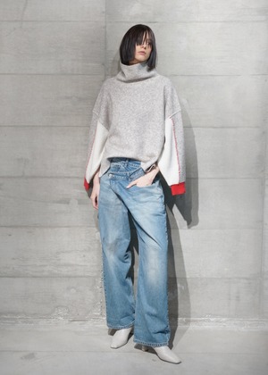 首回りはゆったりめのボリュームタートルネックで、折り返せばすっきり、折らずにオフタートル風にすればルーズな表情も楽しめます。