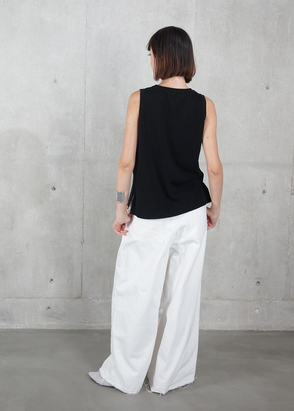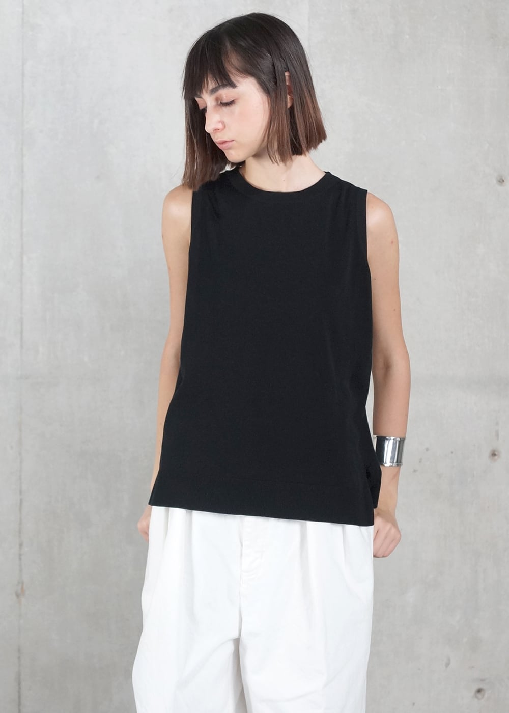 しっかりした手持ち感が大人げなニットタンクトップ。