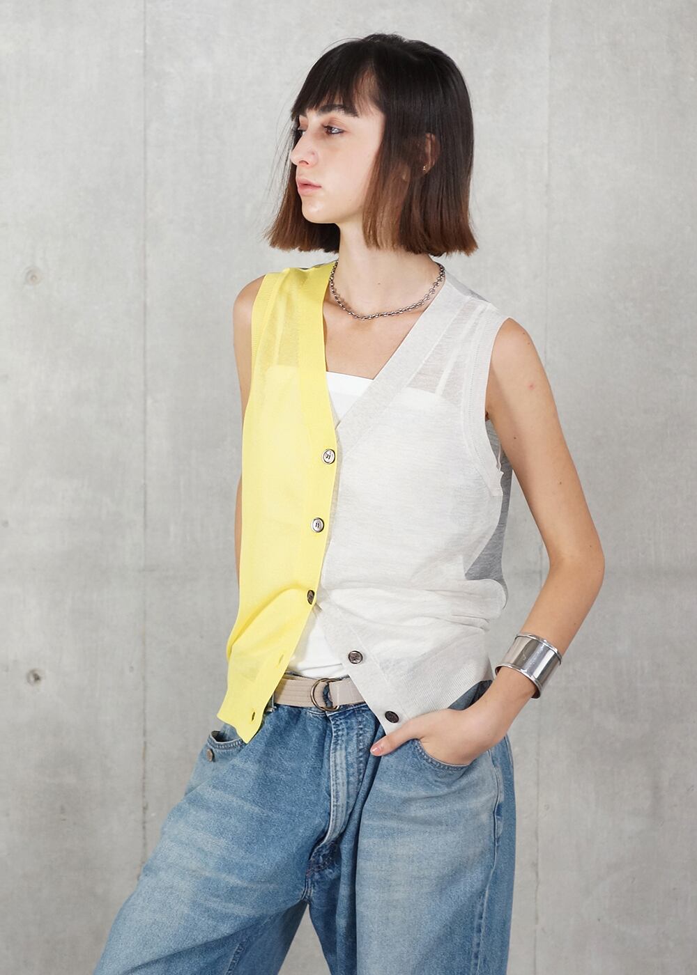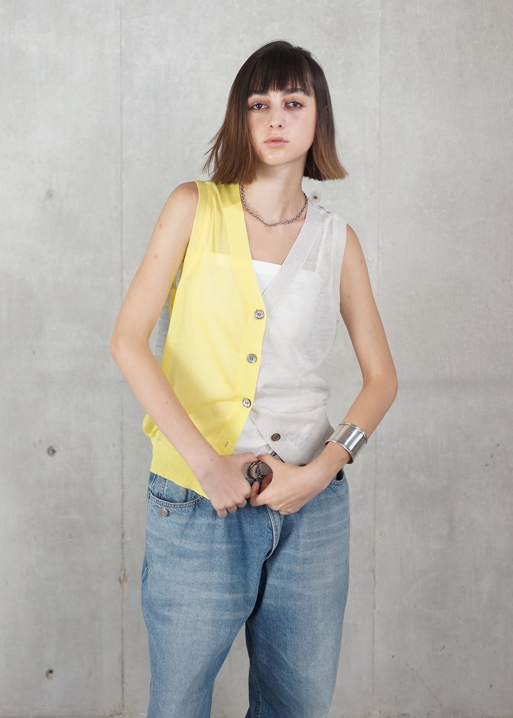 透明感と彩りを纏うニットベスト。