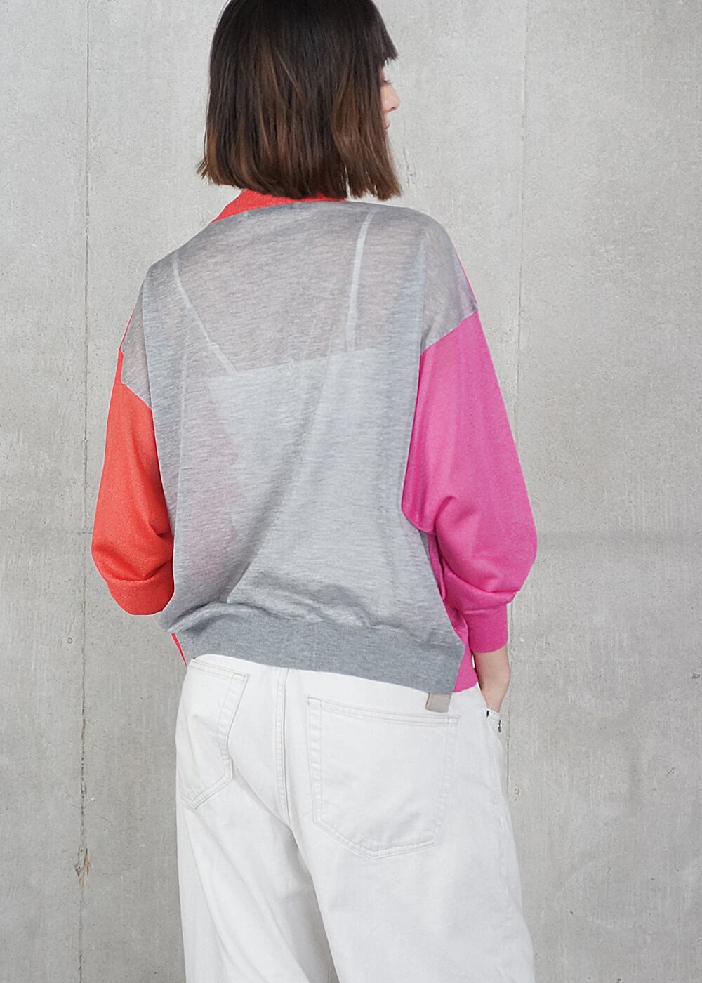 鮮やかなブライトカラーの着映え効果でポジティブな印象を作りながら、オーバーサイズのゆったりとしたシルエットと、バイカラーのデザインがこなれた雰囲気に導いてくれます。