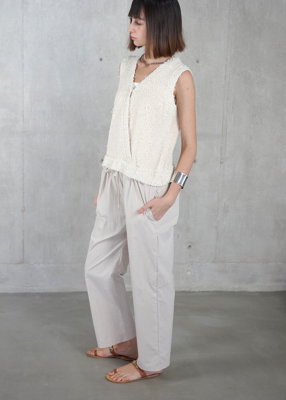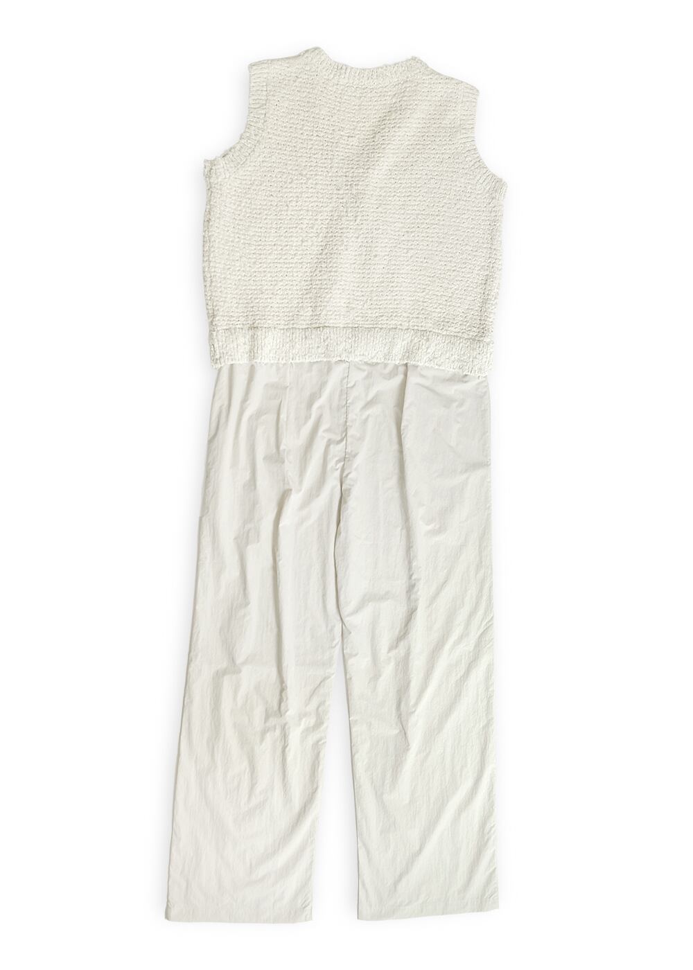 ・パンツ部分は、リラックス感のあるドローストリング仕様。ウエストギャザーでふんわりと立体感が生まれ、軽やかで動きやすい仕上がり。