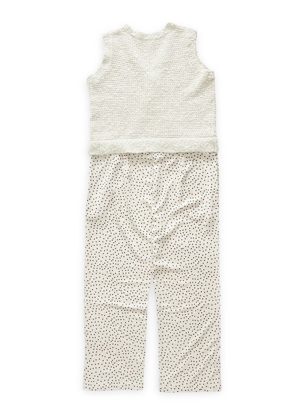 ニットのツィーディーな表情と、リラックス感のあるドローストリングパンツが一体になったオールインワン。