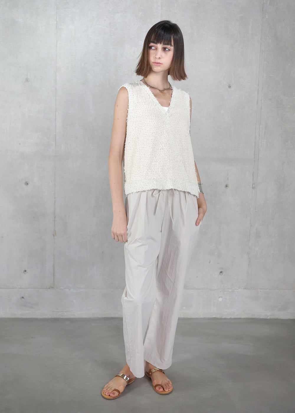 ・パンツ部分は、リラックス感のあるドローストリング仕様。ウエストギャザーでふんわりと立体感が生まれ、軽やかで動きやすい仕上がり。