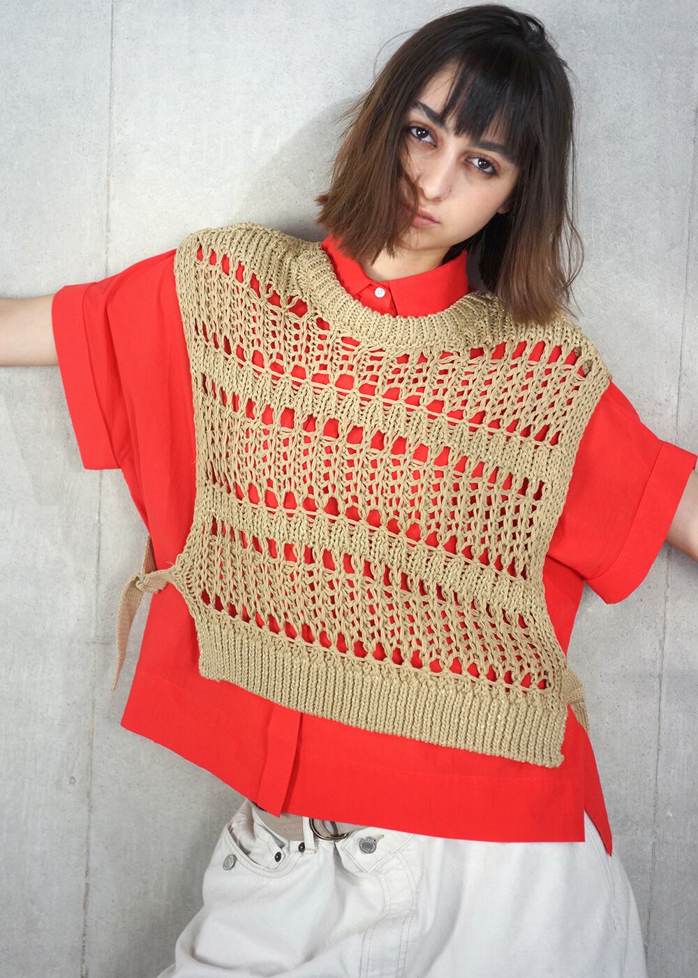 ベストはTシャツやタンクトップ、ワンピースに重ねて、シャツは一枚でさらりと着ても絵になる存在感。