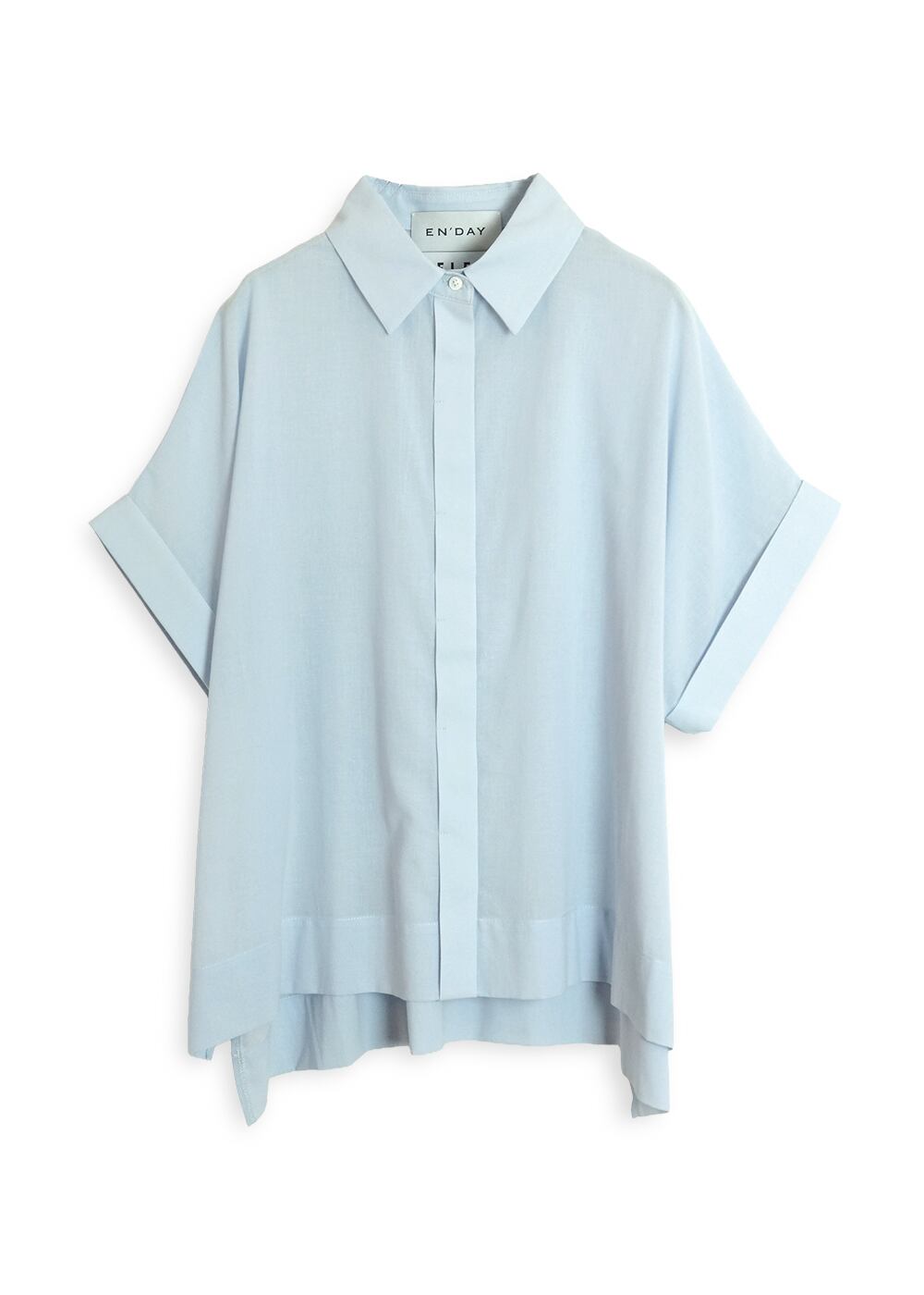 ・シャツは涼やかな綿ボイルのハリ感が、ボクシーなフォルムを美しくキープ。