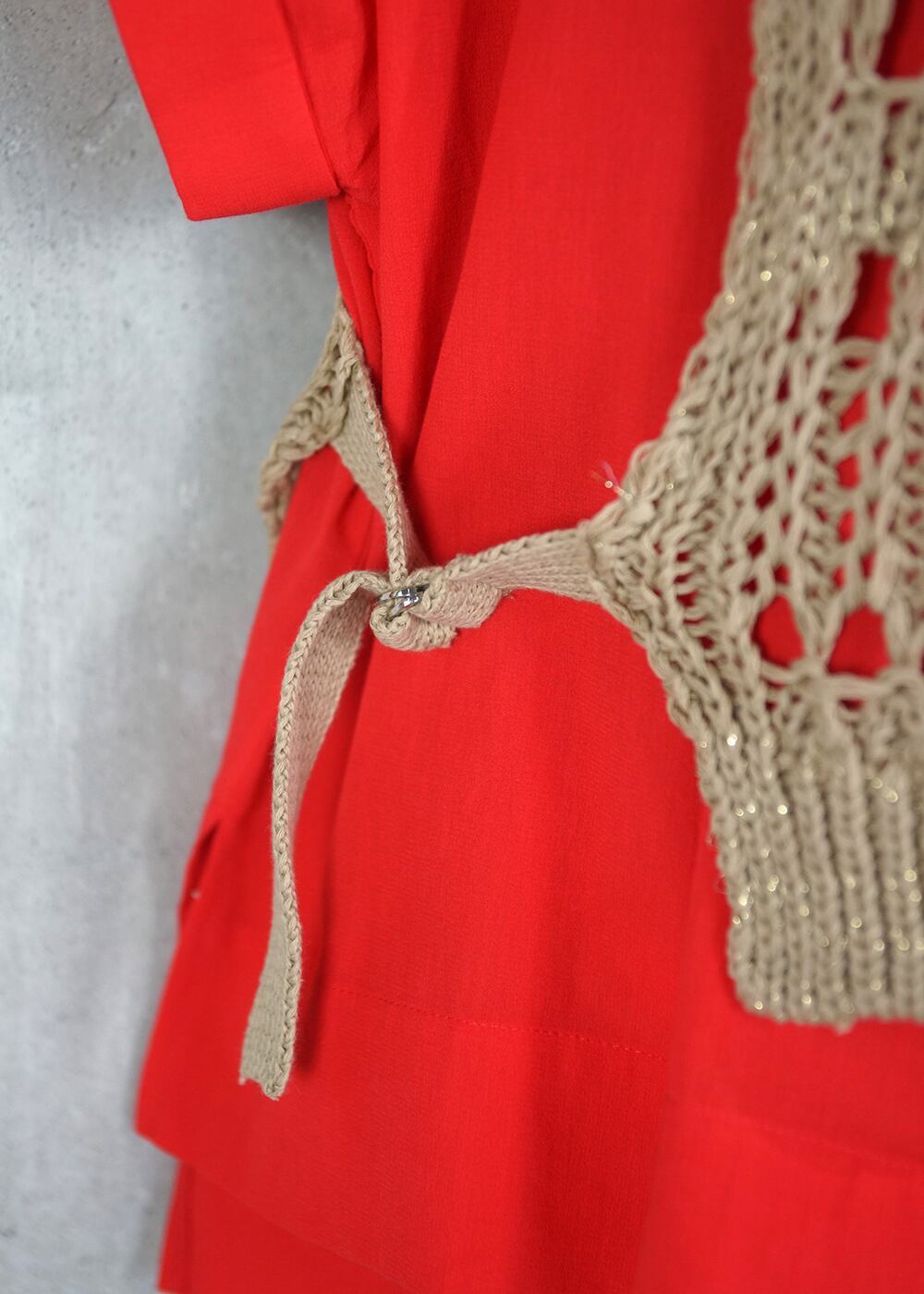 ・ベスト部分には、ふっくらとしたコットンリリヤーンを使用。さらりとした肌離れの良いタッチとほどよい立体感で、部分的に入ったさりげないラメがポイント。