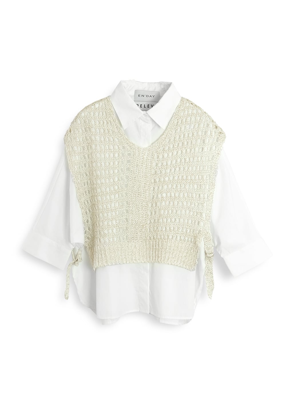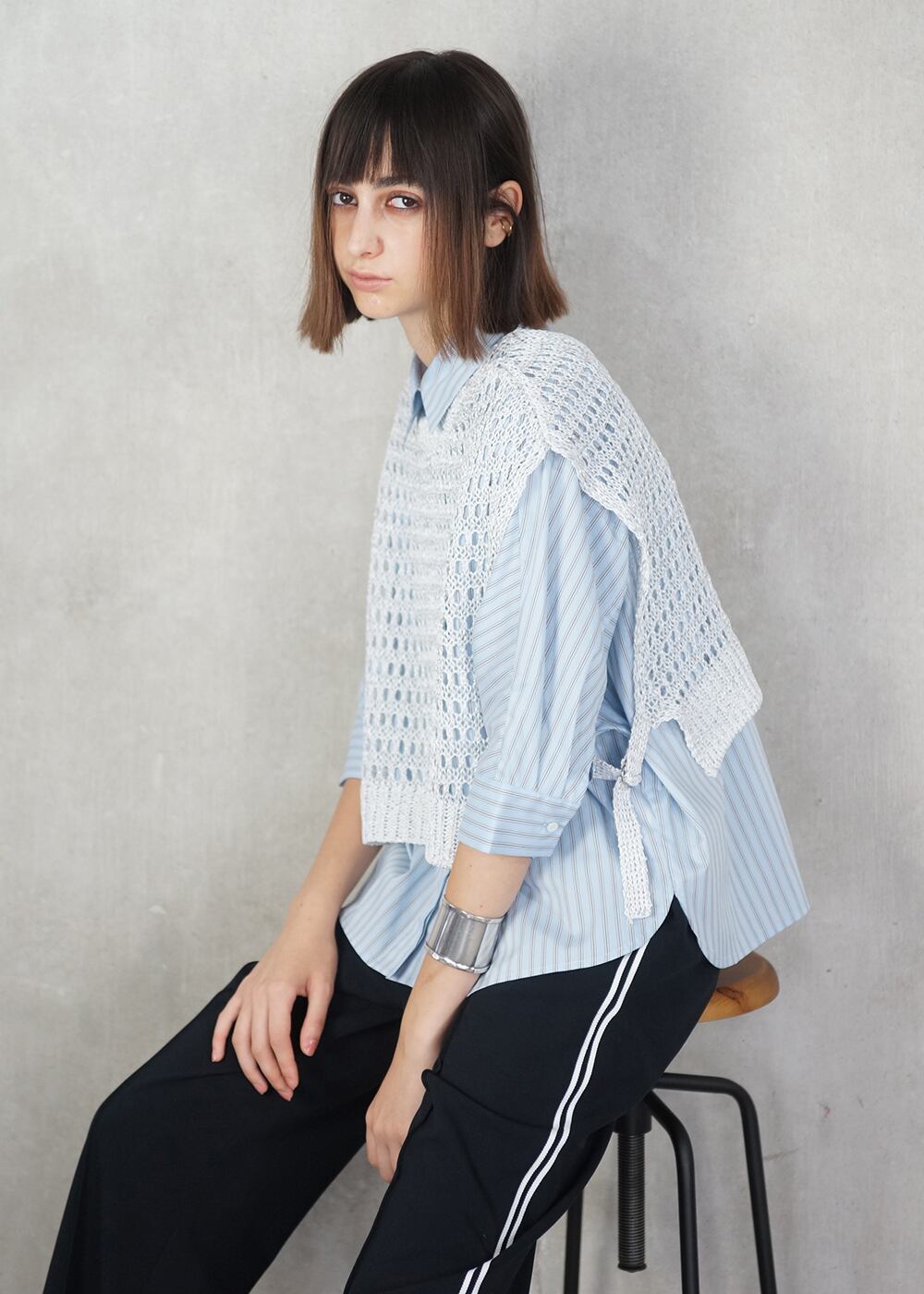 ドルマンスリーブの6分丈シャツを軸に楽しむ、涼しげなレイヤードを叶えるニットベストセット。