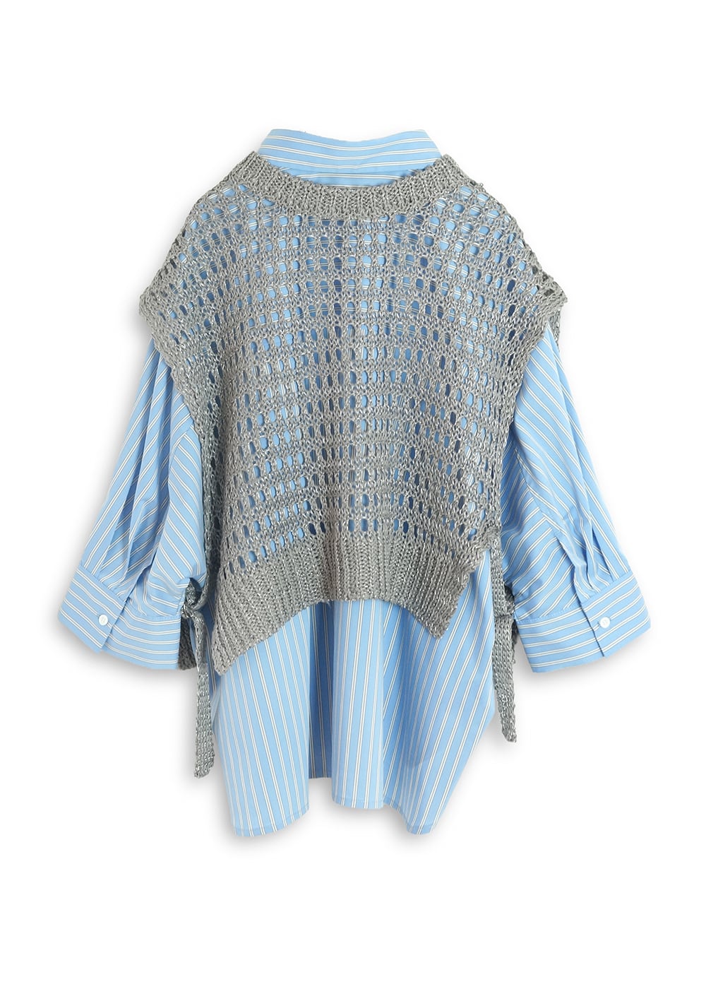 ドルマンスリーブの6分丈シャツを軸に楽しむ、涼しげなレイヤードを叶えるニットベストセット。