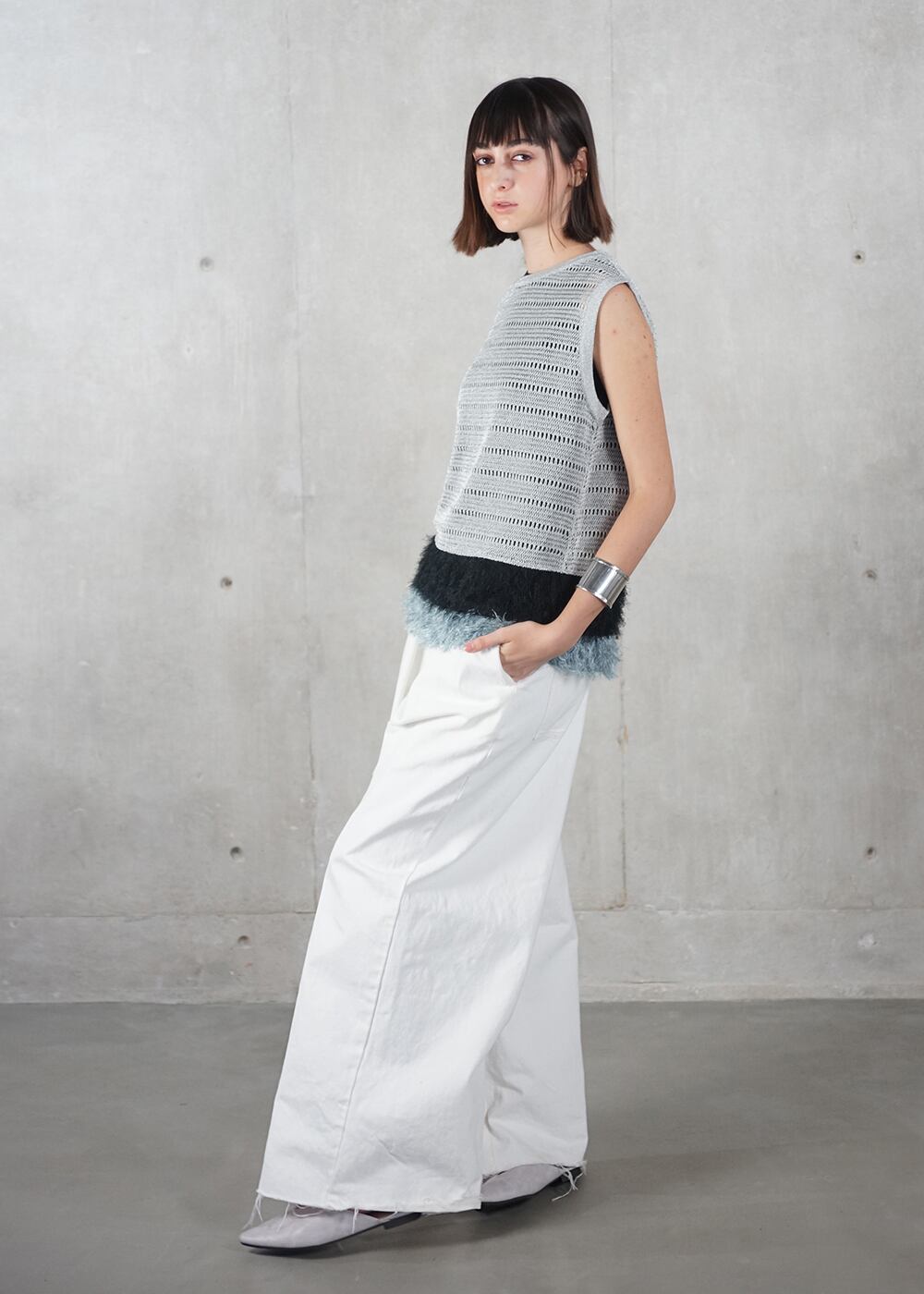エアリーな素材感と表情豊かなテキスタイルで、真夏にも涼やかさを添える一枚です。