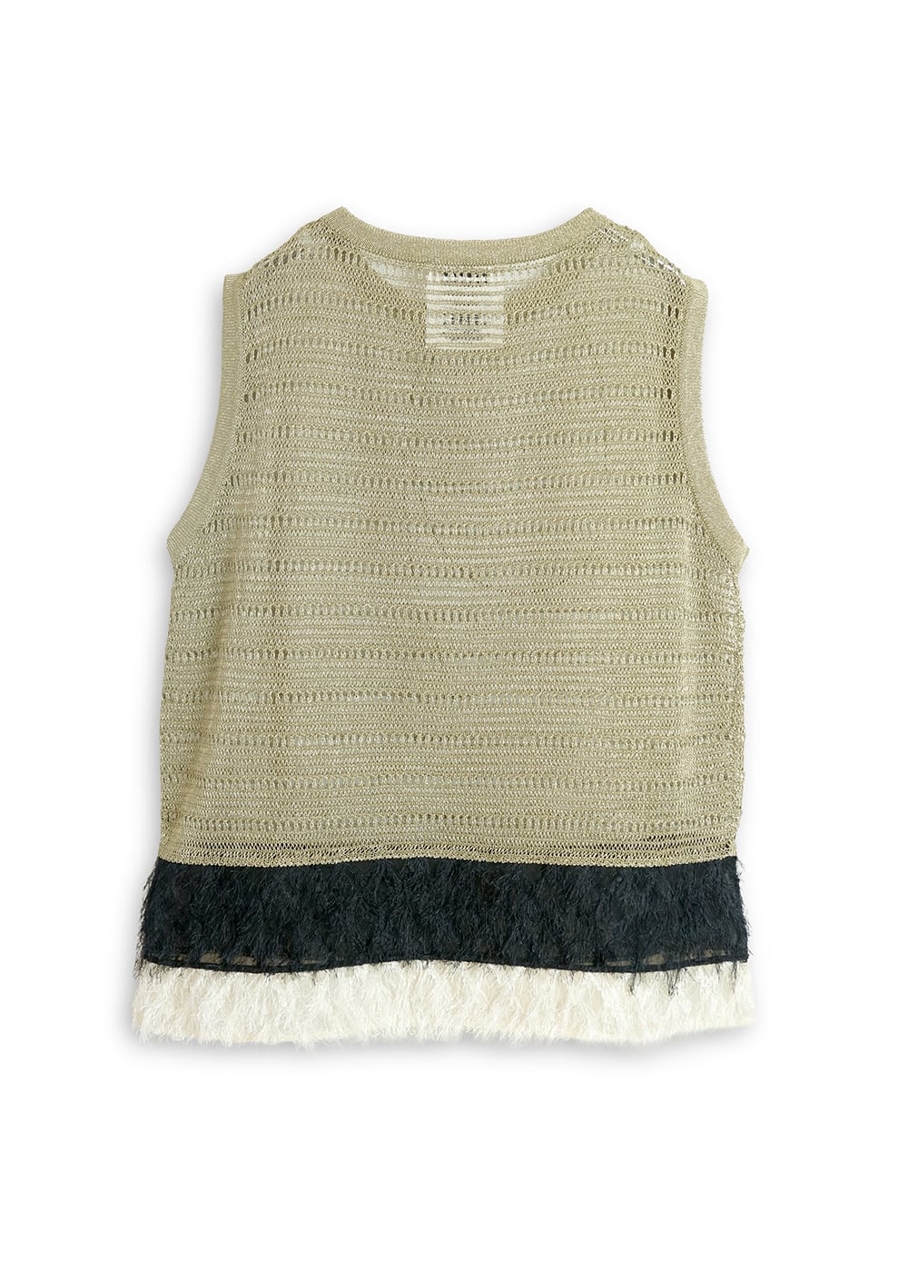 繊細な透かし柄のニットに、バイカラーのカットジャガードをドッキング。