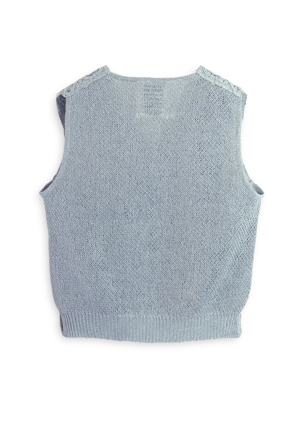 ・後ろ見頃は、ラスティックでマットな風合いの和紙の糸をメインに、さらりとした肌触りのメッシュ編み。