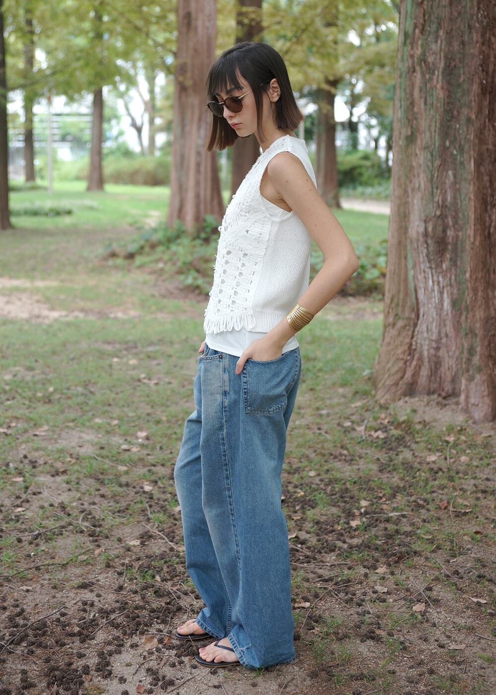 ワンピースと合わせれば程よくリュクスな印象に、Tシャツ+デニムもベストをプラスするだけで洗練された大人のカジュアルに。