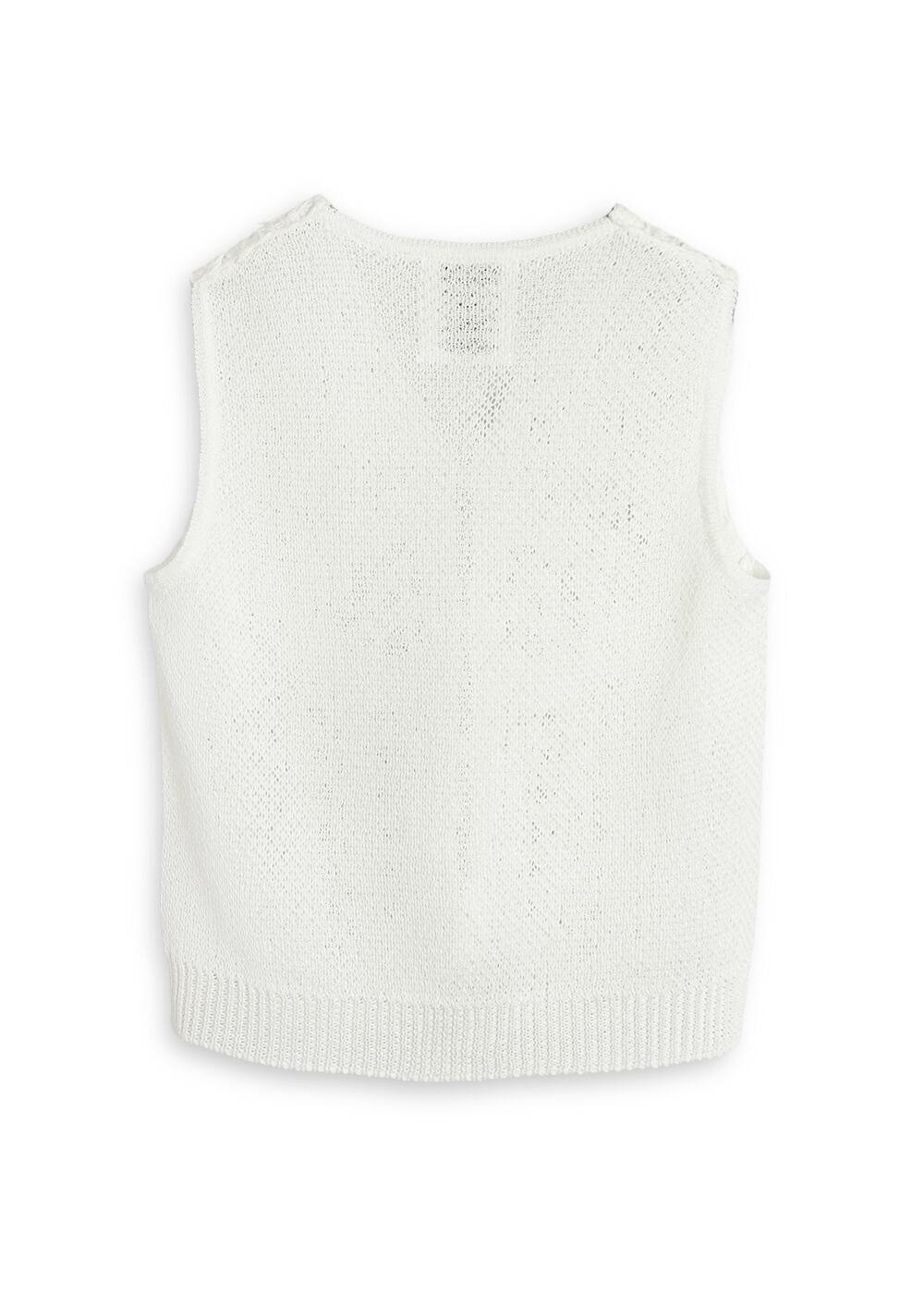 ・後ろ見頃は、ラスティックでマットな風合いの和紙の糸をメインに、さらりとした肌触りのメッシュ編み。