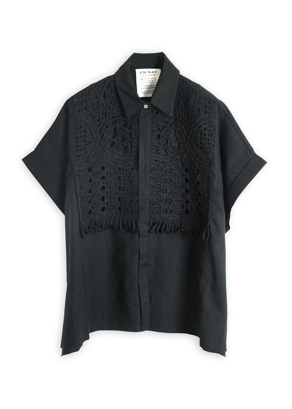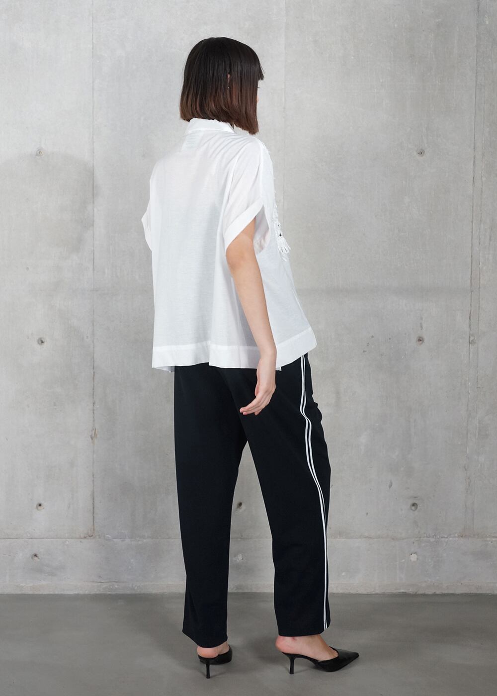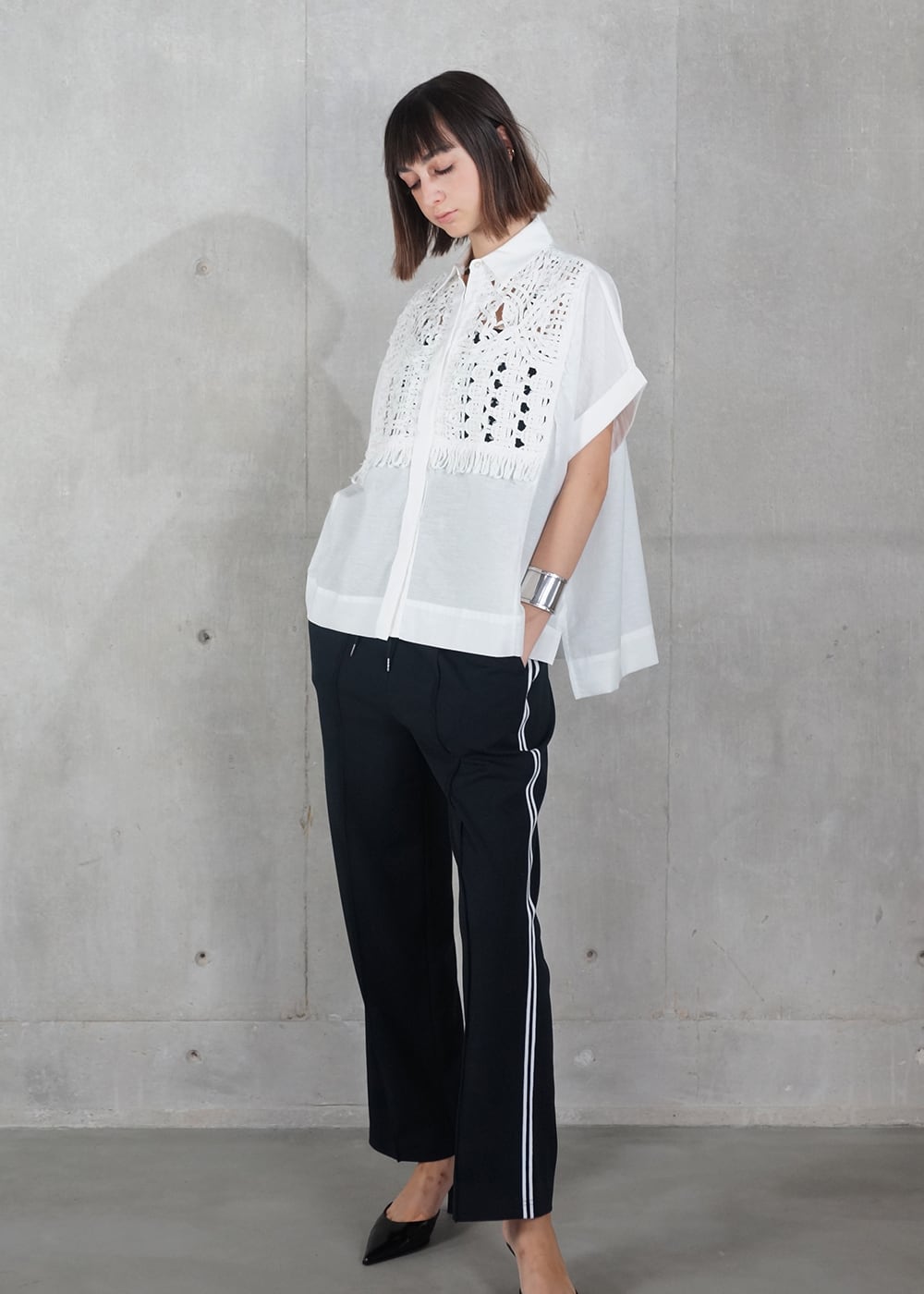 線の躍動が品格を纏うコード刺繍をあしらった襟付きシャツ。