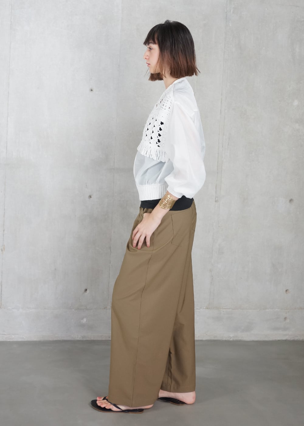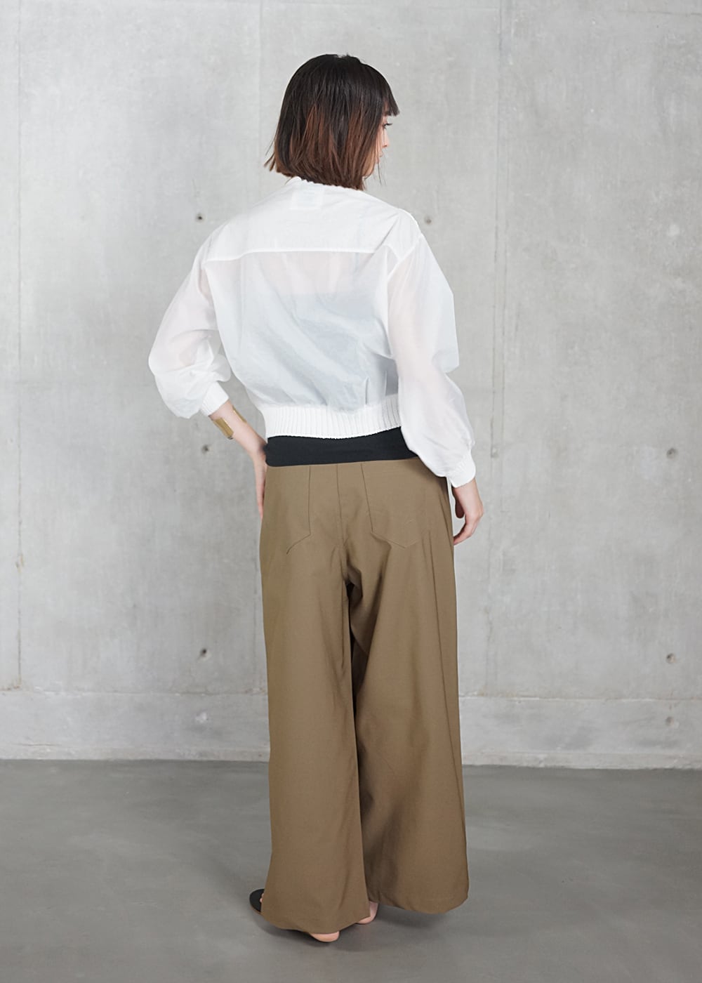 軽やかで肌離れのよいシルエットは、リラックスした日常に寄り添いながらも、モードな余韻を感じさせる佇まい。