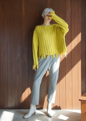ざっくりとした紡毛素材で軽やかなボリューム感に表情豊かなリブ柄が特徴。