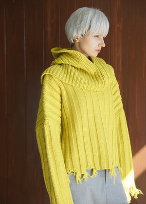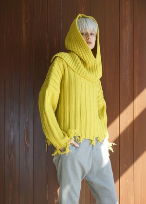 グランジ感漂う大人ルーズ、バラクラバがセットになったニットトップス。